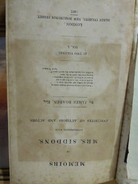 "Memoirs of Mrs Siddons" by J Boaden, two volumes (1827)