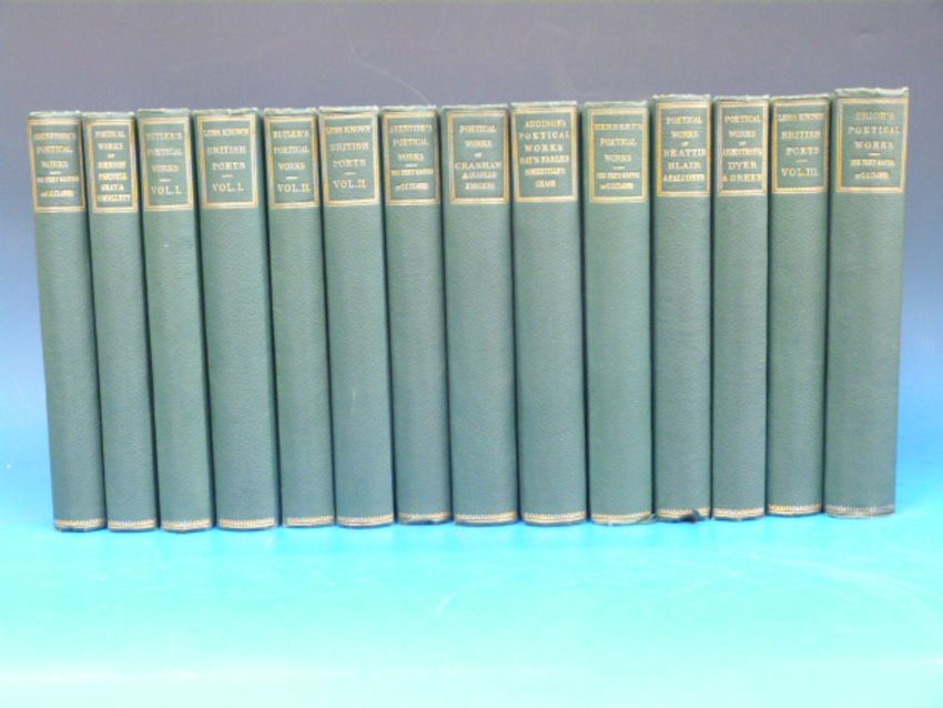 Nichol's Library of the British Poets in 14 volumes (1864): Butler's Poetical Works (volumes one and two); Less Known British Poets (volumes one, two and three); Addison's Poetical Works; Herbert's Poetical Works; Beattie, Blair and Falconer; Richard Crashaw and Quarle's Emblems; Shenstone's Poetical Works; Johnson Parnell, Grey and Smollett; Armstrong, Dyer and Green; Akenside's Poetical Works and Prior's Poetical Works