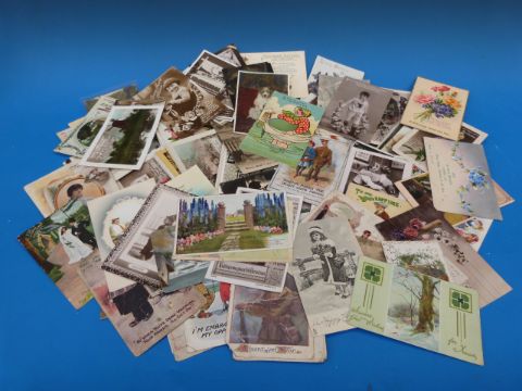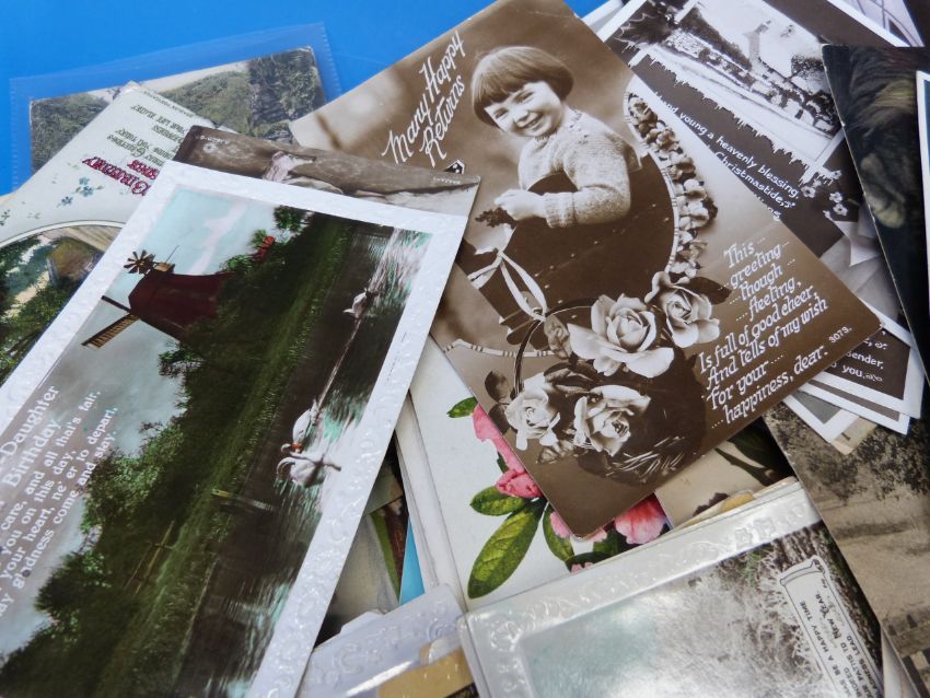 Over 150 vintage greetings postcards, mostly stamped and scripted, some WWI