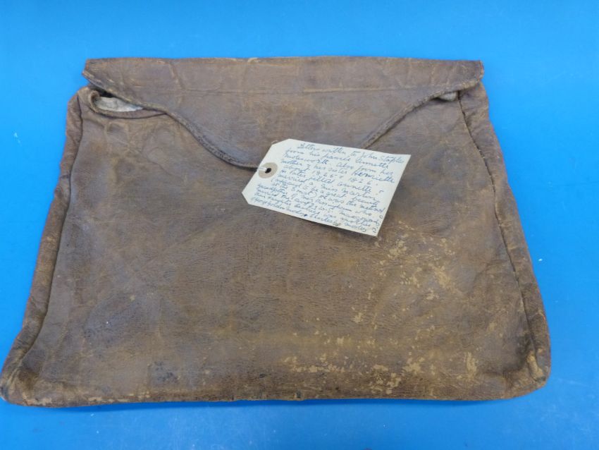 An old leather bag containing early 19thC letters written to John Staples by his fiancee Annette Molesworth. Mr Staples later jilted Annette to marry a Miss Martin - 'a great beauty at court'