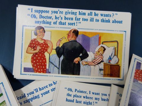 Approximately 150 unused Donald McGill humorous and risque postcards