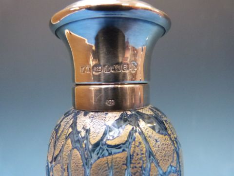 An Isle of Wight iridescent glass scent bottle with hallmarked silver top (height 16.5cm)