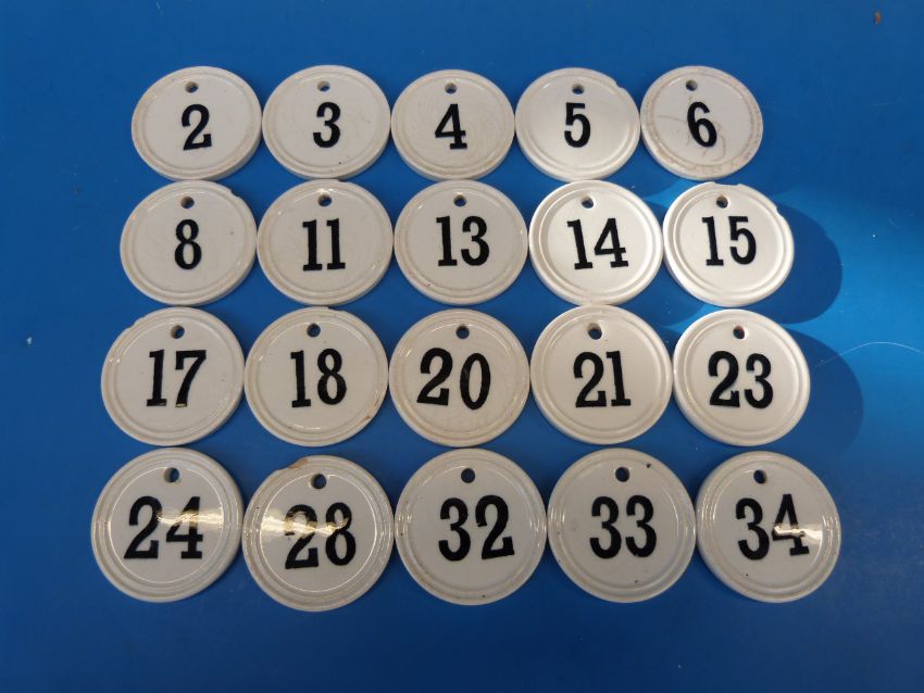 A collection of 19thC ceramic wine bin numbers
