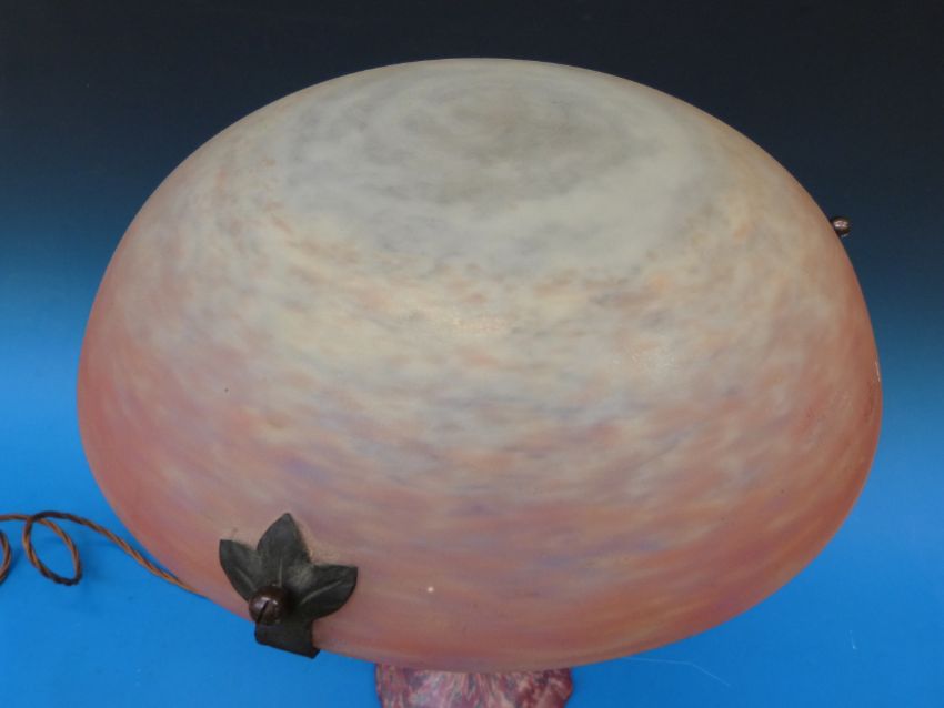A Muller Freres glass table lamp signed to shade (47cm tall)