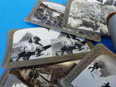 An Underwood and Underwood stereoscope and slides with African, Egyptian and Indian scenes