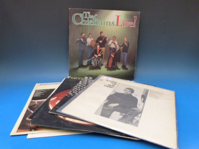 Ten folk LPs. Bob Dylon "Another Side of Bob Dylan" (first mono pressing); Horslips "The Train" (Gatefold with lyric insert); Arlo Guthrie "Arlo" (Steamboat label) and "Hobo's Lullabye" ; The Barrow Poets "Joker"; Nutshell "In Your Eyes"; Donovan "Hurdy Gurdy Man" together with three others.