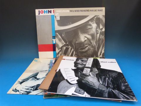 Nine BLUES LPs. ALBERT COLLINS "Iceman" & "Ice Pickin'"; MANCE LIPSCOMB "You'll Never Find Another Man Like Mance"; LITTLE WALTER "Quarter To Twelve"; JOE CALLICOTT "Ain't Gonna Lie To You" (Still sealed); OTIS SPANN "Cryin' Time"; and three LPs by JOHN LEE HOOKER "Don't Turn Me From Your Door"; "This Is Hip" & "Everybody Rockin'".