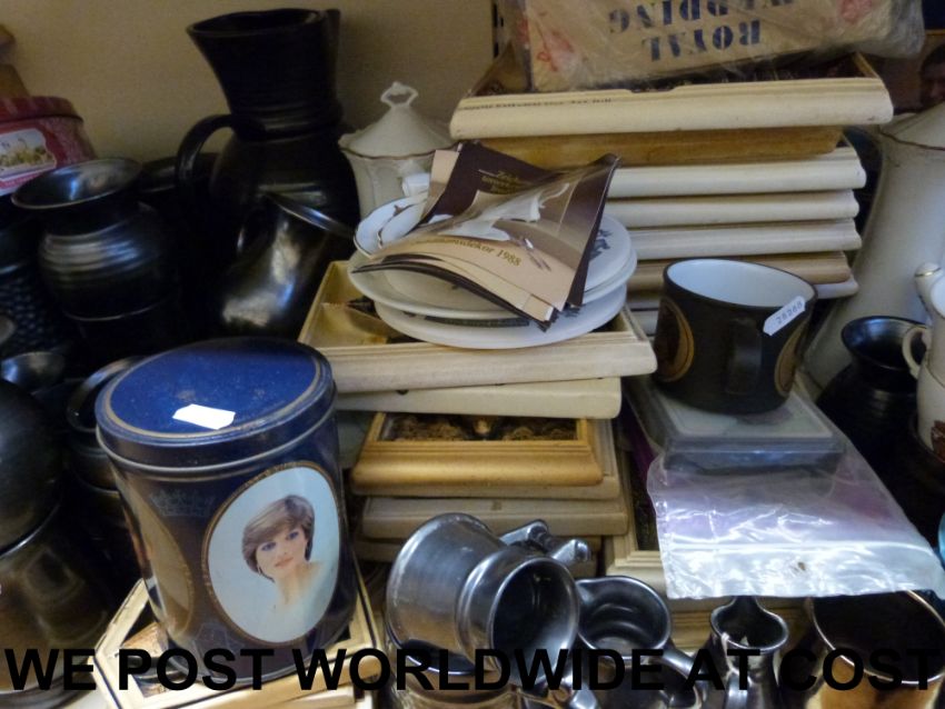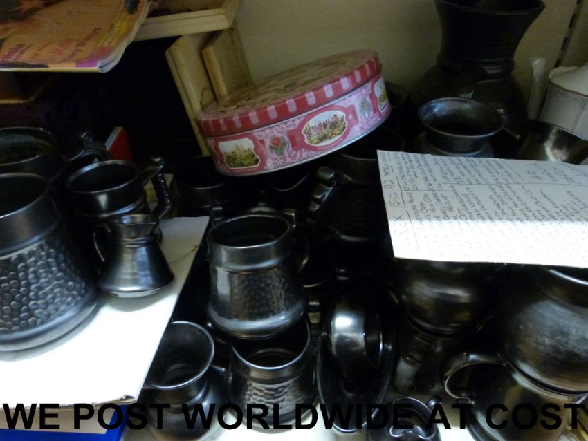 A collection of Ivorex plaques, Prinknash pewter glaze tankards etc
