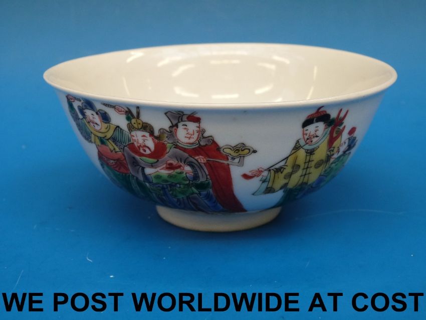 A 19thC / early 20thC Chinese famille vert bowl decorated with figures