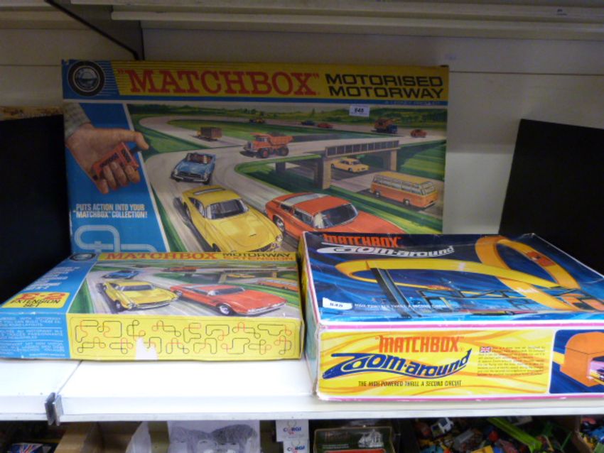 Three Matchbox diecast model vehicle sets M-2, E-2 and Zoom Around (all in original boxes)