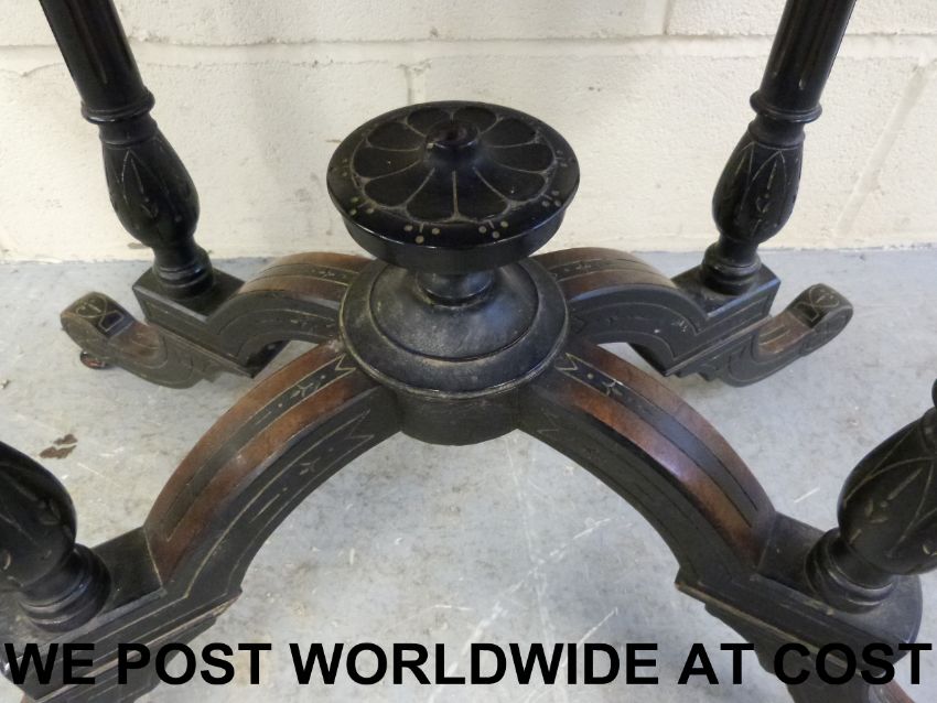 A 19thC ebonised and inlaid oval table (maximum diameter 92cm, height 68cm)
