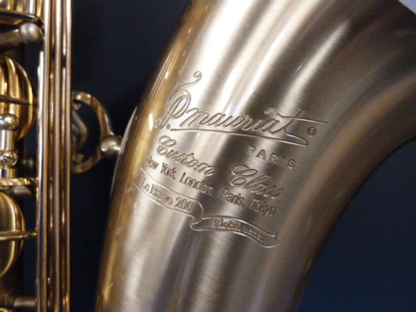 A cased P Mauriat Le Bravo 200 with a super Jazz VI neck, brushed finish with abalone shell keys