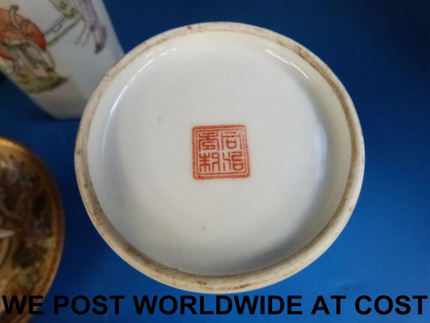 A collection of mainly Chinese porcelain together with a soapstone figural group