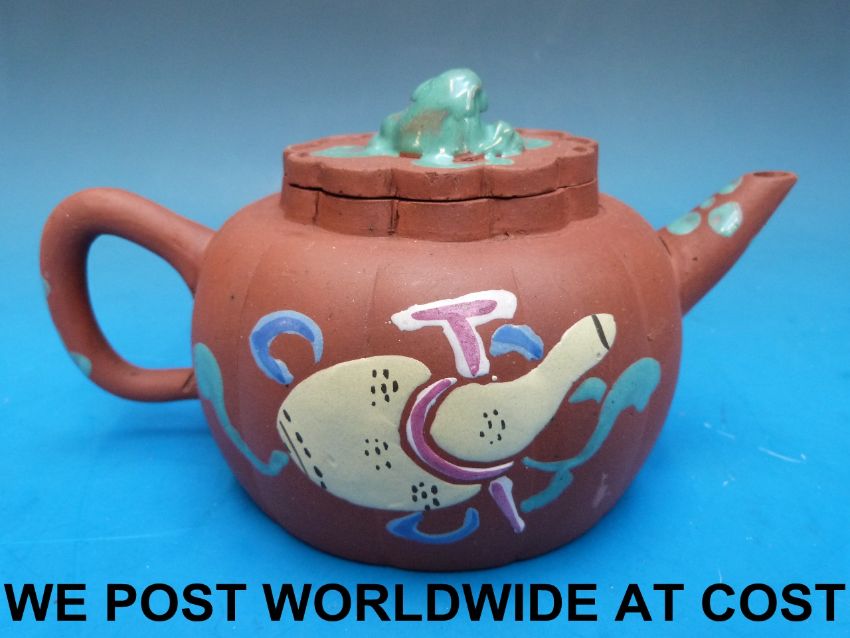 A Chinese Yixing teapot with enamelled decoration