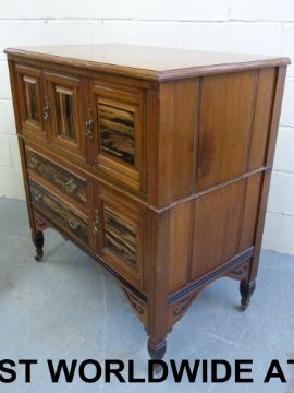 A Lamb of Manchester coromandel and mahogany lowboy, fitted three cupboards and two drawers (width 99cm, depth 56cm, height 106cm)