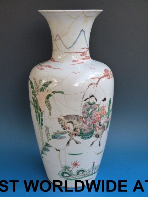 A 19thC Chinese famille verte vase decorated with court scenes (46cm tall)
