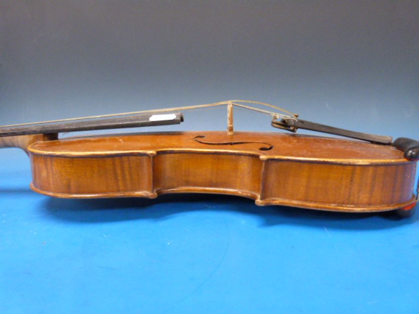 A vintage violin with "Antonius Stradivarius" Czechoslovakia label, complete with bow and case