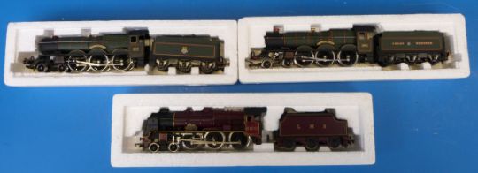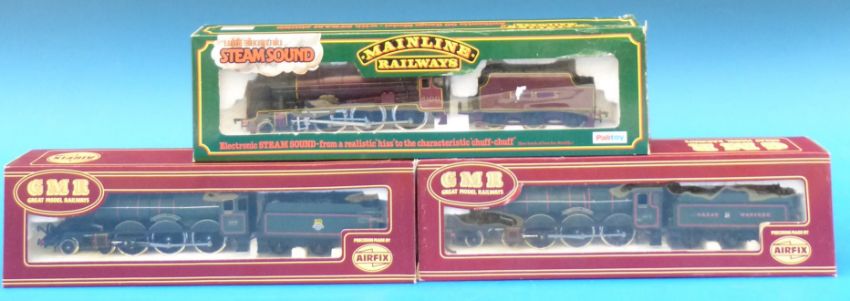 Two Airfix GMR and one Mainline 00 gauge locomotives, castle class BR54125-5, castle class GWR 54124-2 and Royal Scot steam sound 37-080 (all in original boxes)