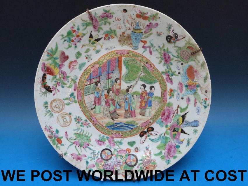 A 19thC Chinese Canton famille rose charger (38cm in diameter)