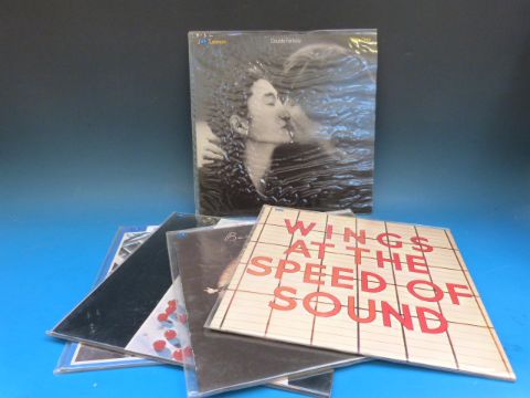 Five BEATLES-related LPs: "1967-1970" (two LPs); "McCartney 1"; "Band On The Run"; "Wings At The Speed Of Sound" & John Lennon "Double Fantasy". All appear in excellent condition.