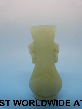 A Chinese jade vase of small proportions with elephant head handles (5cm high)