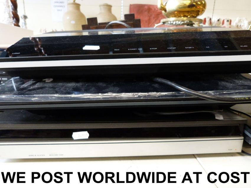 A quantity of Bang & Olufsen equipment including Beocentre 8500, Beogram 8500, Beomic 2000, a pair of Beovox 5405 speakers, Beocord 5500, Beomaster 4000, Beocord 4500, U70 headphones and form - 2 headphones, a USB turntable and Beocord 4500 - PAT test passed