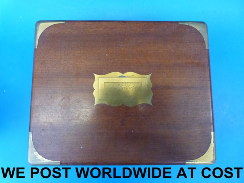 A brass mounted box with costume jewellery