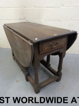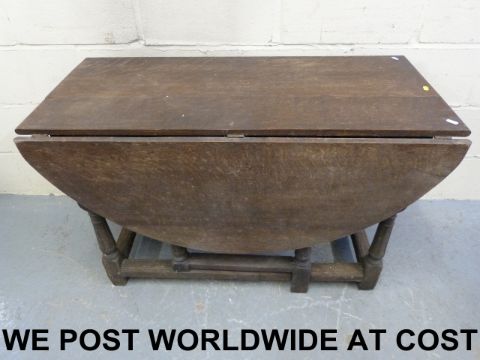 A Georgian mahogany drop leaf table raised on tapering circular legs terminating in brass castors (length 85cm, max width 93cm, height 71cm) together with an oak drop leaf table(length 107cm, height 69cm)