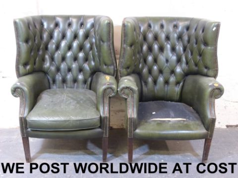 A pair of leather tub chairs and one other