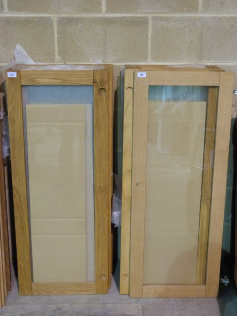 Twenty solid oak glazed doors suitable for display cabinets, kitchens etc (each door approx 122cm x 44.5cm)