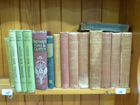 A quantity of books including Rudyard Kipling and National Rose Society annuals 1939,31 and 32