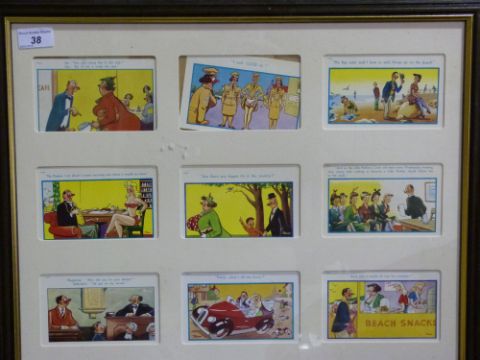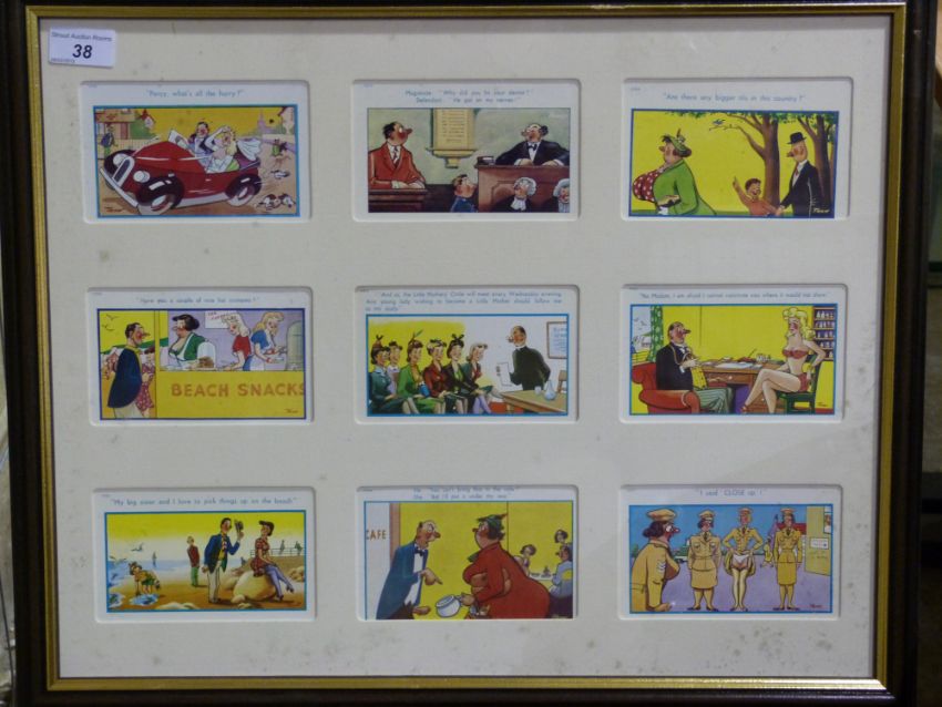Two framed sets of Trow humorous postcards