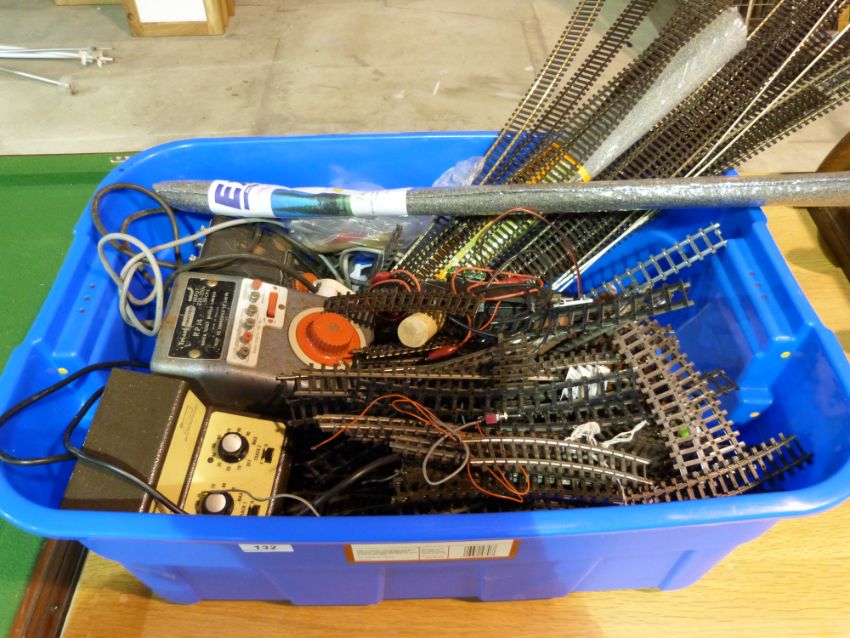 A large selection of 00 gauge railway track and accessories including points, track and wheel cleaners, scenery etc