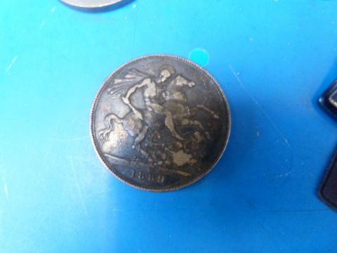 A quantity of coins to include nine five pound crowns, other modern crowns, sundry coins including some silver and an 1889 Victorian crown