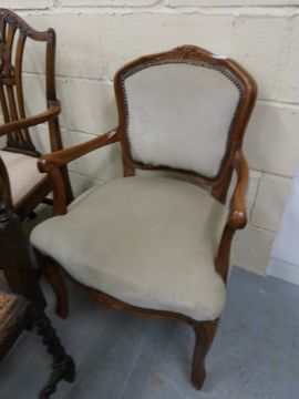 A selection of 19th / 20thC chairs including oak bergere, Art Nouveau, Regency bar back etc