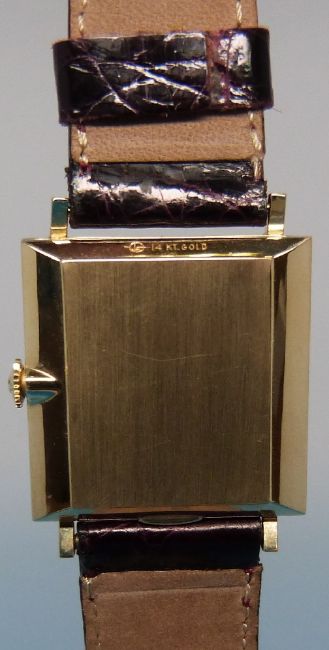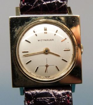A Wittnauer USA ladies' wristwatch in a square 14kt yellow metal case on a brown leather strap