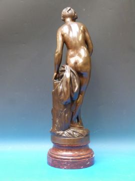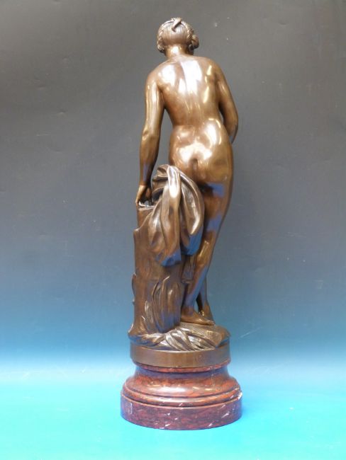 After Etienne Maurice Falconet: Bronze of lady with a cloth beside a pillar inscribed F Barbedienne Fondeur to base, height 67cm