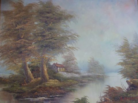 A pair of oils on canvas of rural river scenes, signed B Groneman (39 x 49cm)