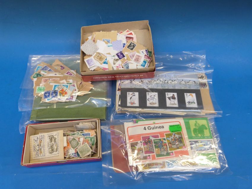 A box of stamps comprising albums, loose stamps and presentation packs