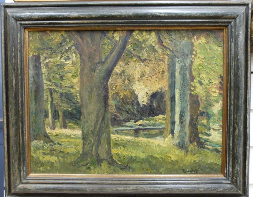 Ronald Ossory Dunlop (1894-1973): Oil on canvas of a woodland scene signed lower right Dunlop (37 x 49cm)