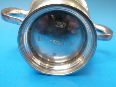 A Scottish hallmarked silver twin handled loving cup, Edinburgh 1909, maker Hamilton & Inches. Height 8cm, weight 166g