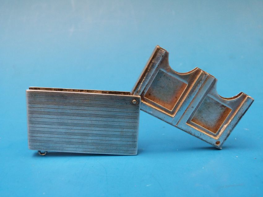 A hallmarked silver double stamp case, B'ham 1920. Makers mark J & W, length 4.5 cm