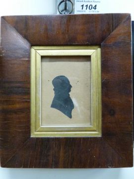 An 19thC portrait miniature of a lady together with two silhouettes, one with gold highlights, the other in rosewood frame