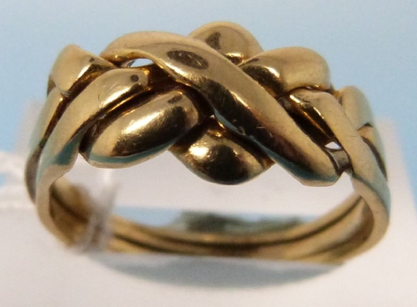 A yellow metal ring marked 18ct in a plated design (5.8g) (size S)