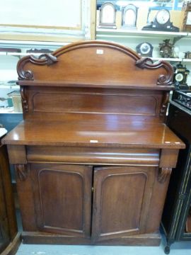 A Victorian mahogany chiffonier with shelf to back, the base fitted single drawer with cupboard below (width 99cm, depth 36cm, height 134cm)