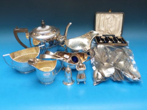 A quantity of plated ware to include teaset, sauce boats and Kings pattern cutlery