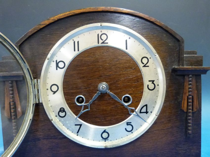 An oak-cased mantel clock with German movement