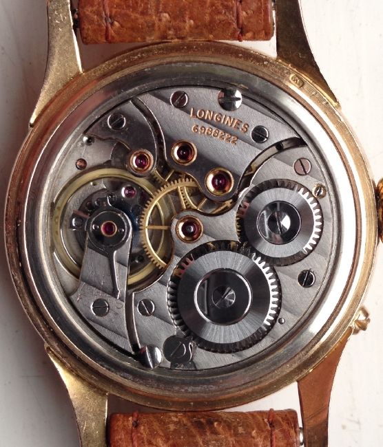 A Longines 18ct gold gentleman's wristwatch with subsidiary seconds dial and date appature, on brown leather strap