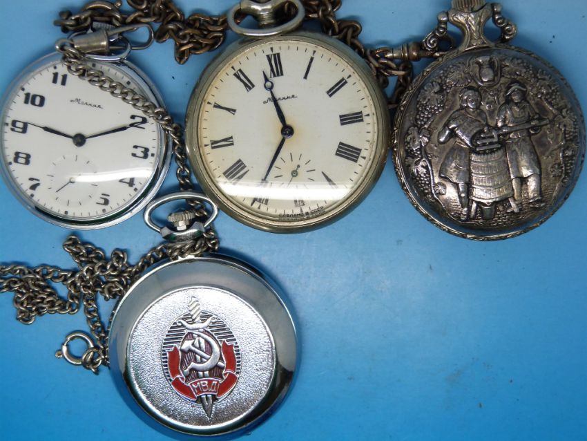 Four Soviet Union gentleman's pocket watches with original paperwork