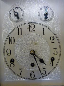 An early 20thC oak cased mantel clock, the silvered dial with Arabic numerals secondary chime silent facility, movement by Kienzle Germany with Westminster chime